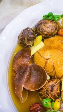 陈皮水鸭汤、新会陈皮骨、陈皮古法八珍扒大鸭、新会陈皮三宝鸡、陈皮咸虾、陈皮豆腐、陈皮饼......道地陈皮宴吸引了众多食客青睐。