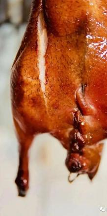 以麦芽糖涂抹鹅身后,让烧鹅呈现出诱人的糖色,风干5至6小时后即可放入180℃高温的泥炉中烧制,烧制1个小时左右烧鹅便可出炉。