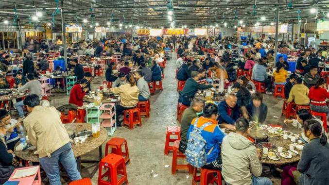 每天傍晚5:30左右,田心牛场餐厅就开始座无虚席,一桌一锅热气升腾,人来人往,熙熙攘攘。