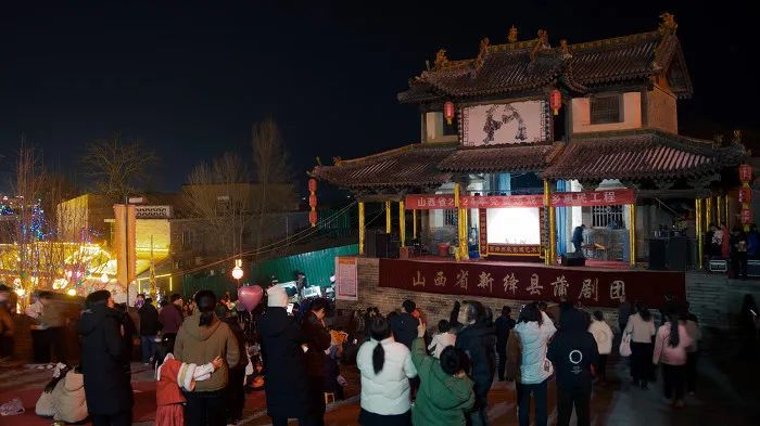 在新绛县古城绛州千年乐楼,人们观看皮影戏原标题:《绛州千年乐楼,非遗皮影闹春》