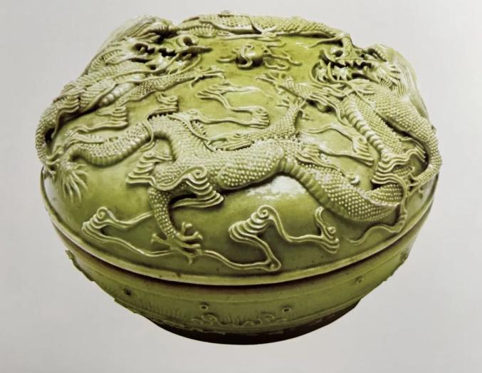 绿釉雕龙纹印盒