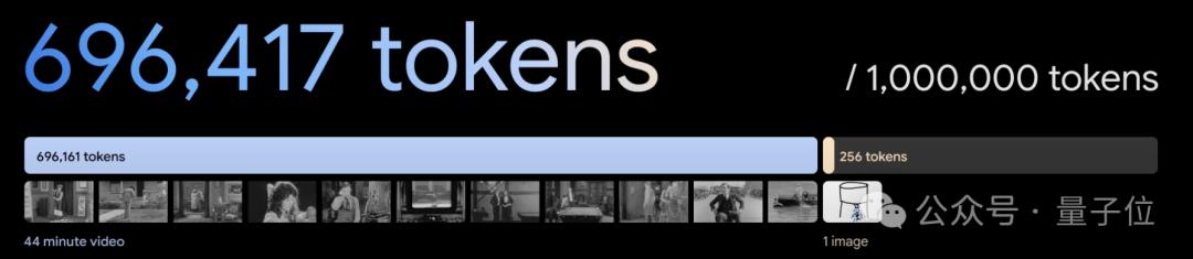 使用的视频是巴斯特·基顿(Buster Keaton)的44分钟电影,共696161 token。