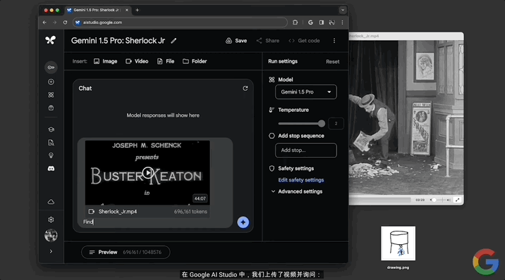 在第一段演示视频中,展示的是Gemini 1.5处理长视频的能力。