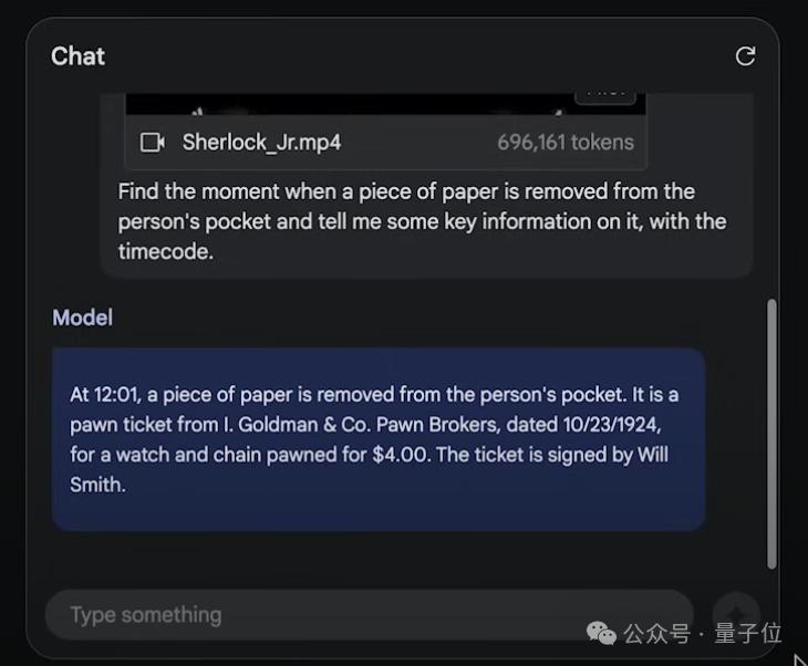 演示中直接上传了电影,并给了模型这样的提示词:找到从人的口袋中取出一张纸的那一刻,并告诉我一些关于它的关键信息以及时间码。