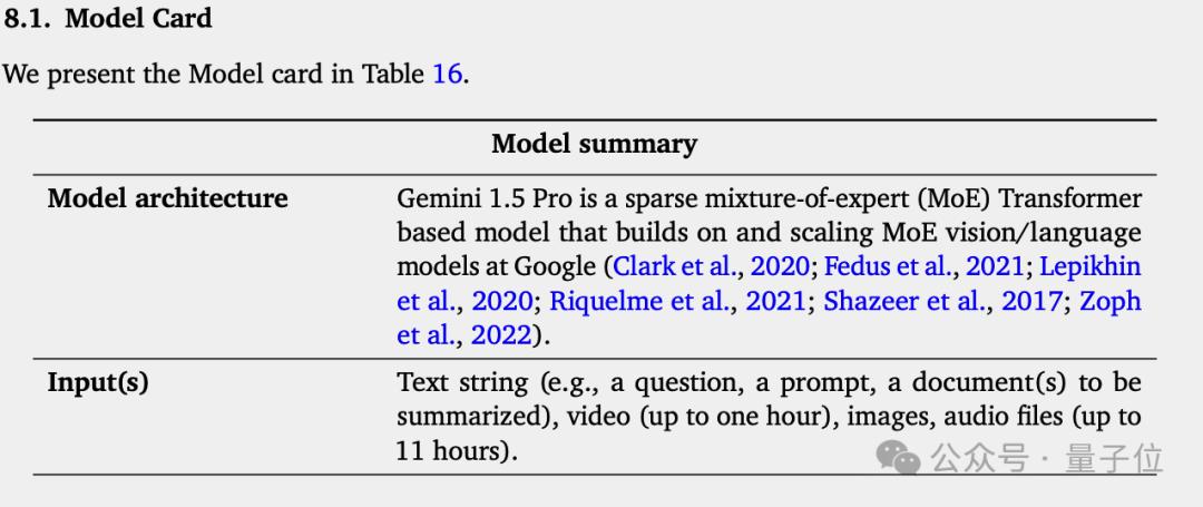 其中透露Gemini 1.5使用了MoE架构,但没有更多细节。