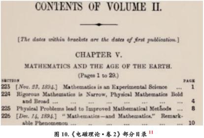他还说过,Logic can be patient, for it is eternal.(逻辑可以像普通人一样,内部会有毛病。)意思是,有毛病仍然有逻辑。他在《电磁理论·卷 2》 中专门设了四节阐述他的数学思想,标题分别是“数学是实验科学”“严格的数学狭窄,物理数学宽得多”“物理问题导致数学方法的改进” 和“纯数学还是数学,值得注意的现象”。文中对剑桥学派有些挖苦的话,这里就不提了。