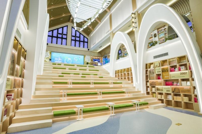 半马苏河驿站·长风湾党群服务中心围绕儿童需求为重要导向,建设儿童“乐读、乐学”的活力空间。通过与市少年儿童图书馆联动、与蜻蜓FM等社会机构深度合作,将人文、科普、教育等知识融入各项活动中,让儿童在这里就可以一站式学习苏河沿线历史建筑的发展沿革和特色。长风公园