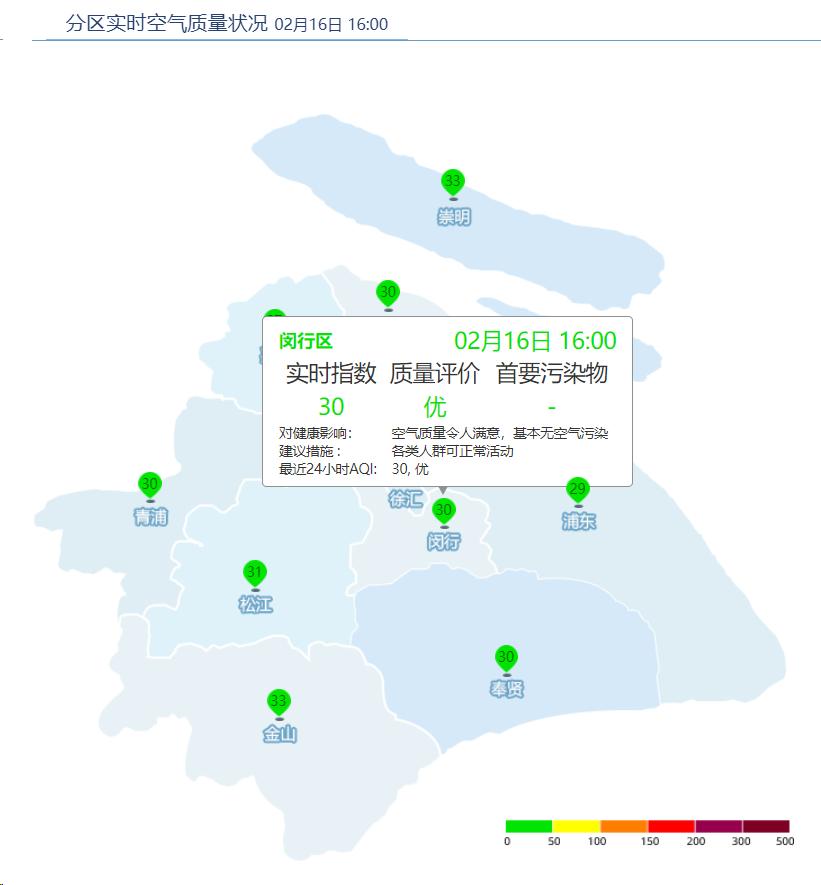 闵行区AQI为30,优。