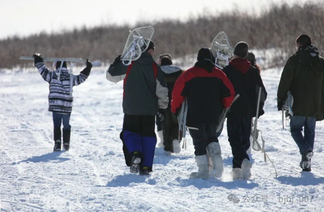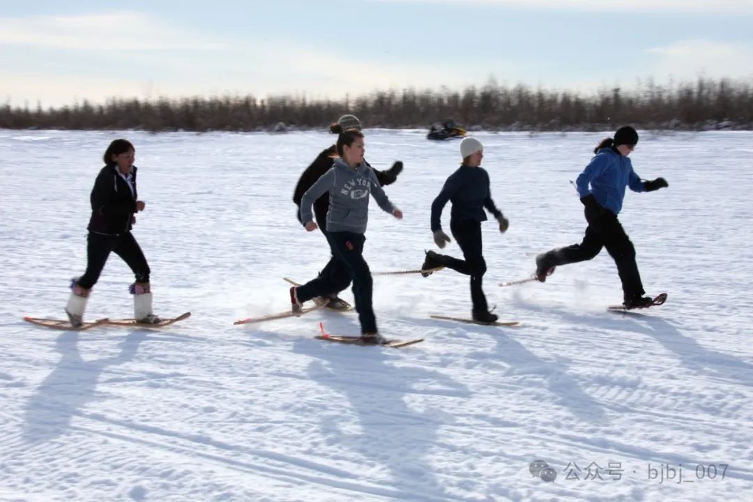 有些研究者认为,生活在北极的因纽特人反而很少使用雪屐,因为他们冬天的大部分徒步旅行都是在海冰或苔原上进行的,那里的雪不会堆积得很深。不知这个说法有什么依据。我看到的事实是:尽管如今的雪屐最大的用途只是娱乐,但因纽特人对“大拖鞋”不仅有感情而且有需求——许多因纽特人不仅有自己的雪屐,还会十分熟练的使用。