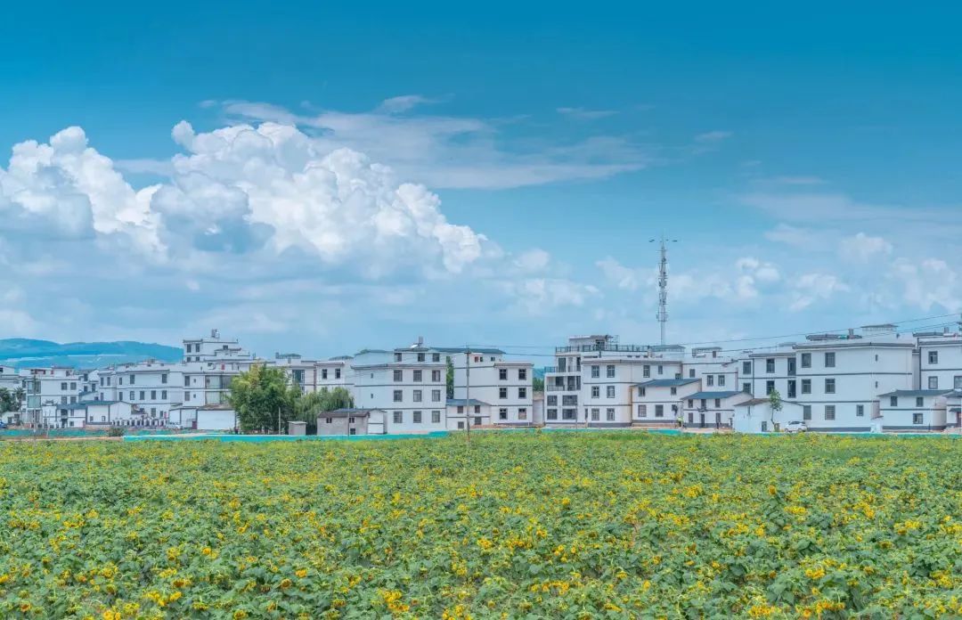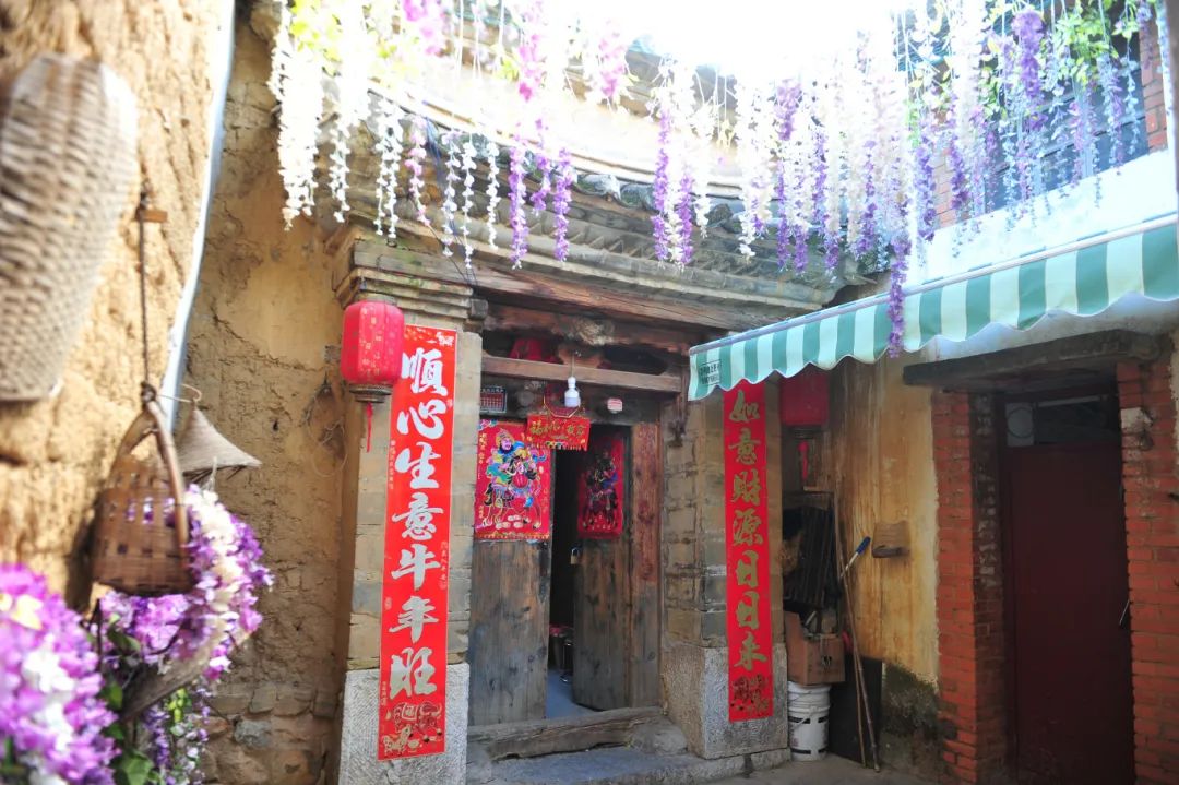 百草村。图源:昆明西山发布微信公众号新修的村子门头大气、古朴,进村的道路早已修建成宽敞的马路。各家各户家门口各种绿植、围墙上的炮仗花和牵牛花开得正艳,村里处处是可入画的美景。