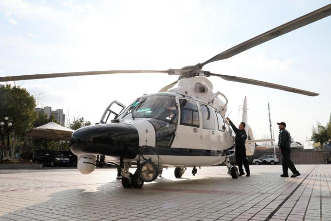 2月16日上午,合肥警航正在开展巡查。2月16日8时30分,合肥市公安局特警支队内,两架警用直升机正在有条不紊地进行起飞前的最后检查,等待执行高速巡逻飞行任务。9时,伴随着引擎启动的轰鸣声,两架警用直升机腾空而起。