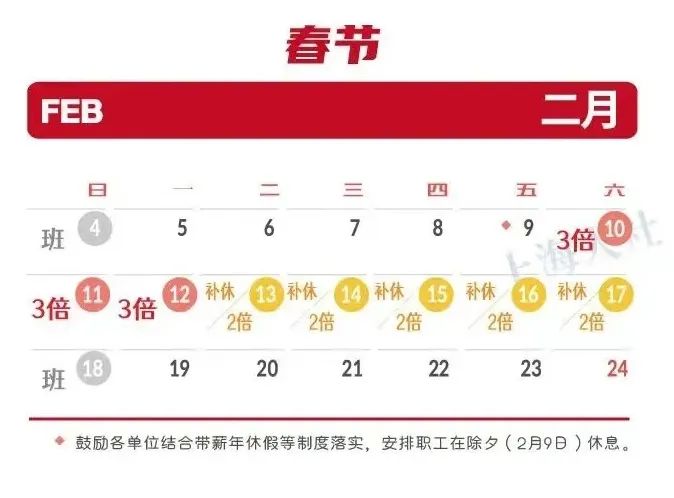 假期最后一天是大年初八!大年初九,2月18日(星期日)要上班!要上班!快调好闹钟吧!