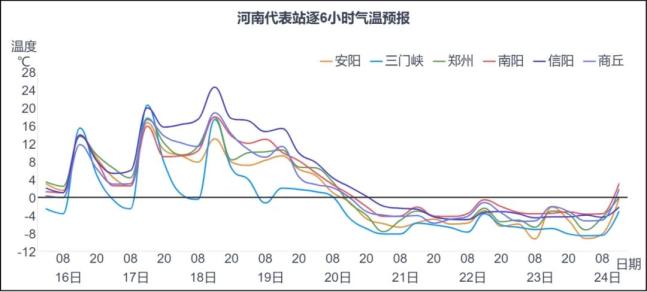 2月16日至18日,河南省气温显著回升,最高气温南部21℃~24℃,西部、北部13℃~15℃,其他县市17℃~20℃。受强冷空气影响,19日起,全省气温剧烈下降。
