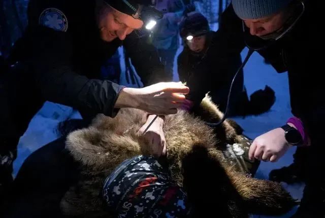 德国慕尼黑大学的两位心脏病学家Tobias Petzold和Manuela Thienel与其他研究人员合作,对冬眠的瑞典棕熊进行了研究。为了对比不同季节熊的血液中各项数据的异同,研究团队在夏天的时候就开始乘坐直升机飞在瑞典斯堪的纳维亚的上空寻找棕熊。经过麻醉后,研究人员迅速采集取样,并为这些熊佩戴GPS定位项圈;随后的两个冬天里,研究人员经由信号的“指引”在雪地里跋涉,找到戴着GPS项圈的冬眠棕熊并采集血样。经过对比,他们发现了熊血液中的季节差异——在夏天,熊血中一种名为HSP47的蛋白质含量丰富,但在冬天,这种蛋白质几乎消失了。