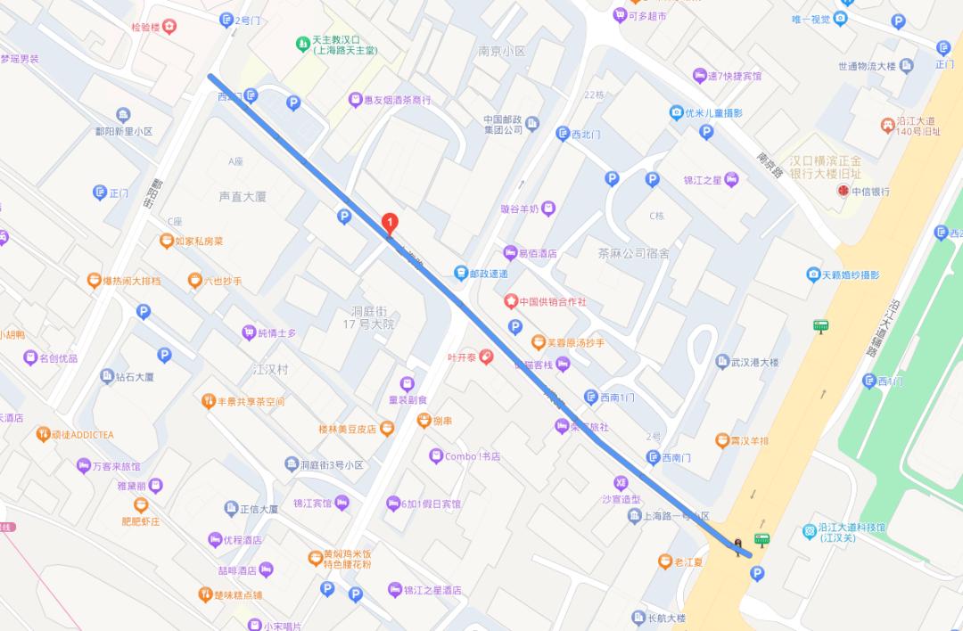 上海路位于江汉区沿江大道北侧。东南起沿江大道武汉港19码头路段,西北至鄱阳街。长350米,宽11米。此路形成于本世纪初,原以地处英商怡和洋行附近而得名怡和街。抗战胜利后,怡和街于1946年改名为上海路。江西省