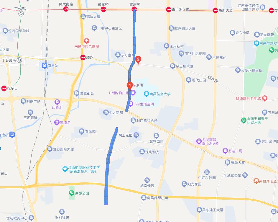 南昌的上海路位于青山湖区,为南北向的一条干道,南与解放西路交汇,北与北京东路交汇。道路全长约2.5千米,双向四车道。上海路的中段有南昌市第十七中学,南段东边则有南昌航空大学科技学院等机构。九江市