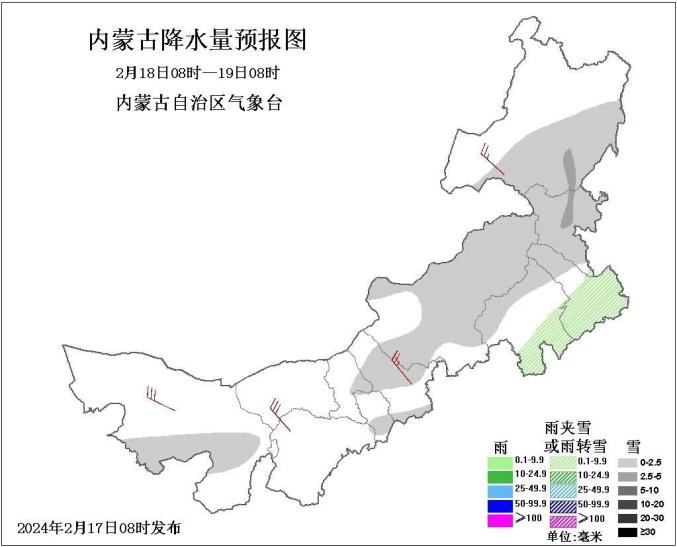 预计,今后两天(2月18日-19日),随着新一轮冷空气的到来,内蒙古自西向东将受到寒潮天气过程的影响,大部地区气温如坐过山车,冷暖起伏剧烈;西中部及东南部偏东地区风力较大,局部伴有沙尘;同时,中西部偏北和东部地区有分散性小雪,东南部有雨雪相态转化。天气变化剧烈对春运返程稍有不利,公众要及时关注临近天气预报预警信息,合理安排出行计划。