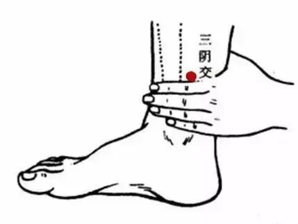 ③三阴交:位于小腿内侧,当足内踝尖上3寸,胫骨内侧缘后方。