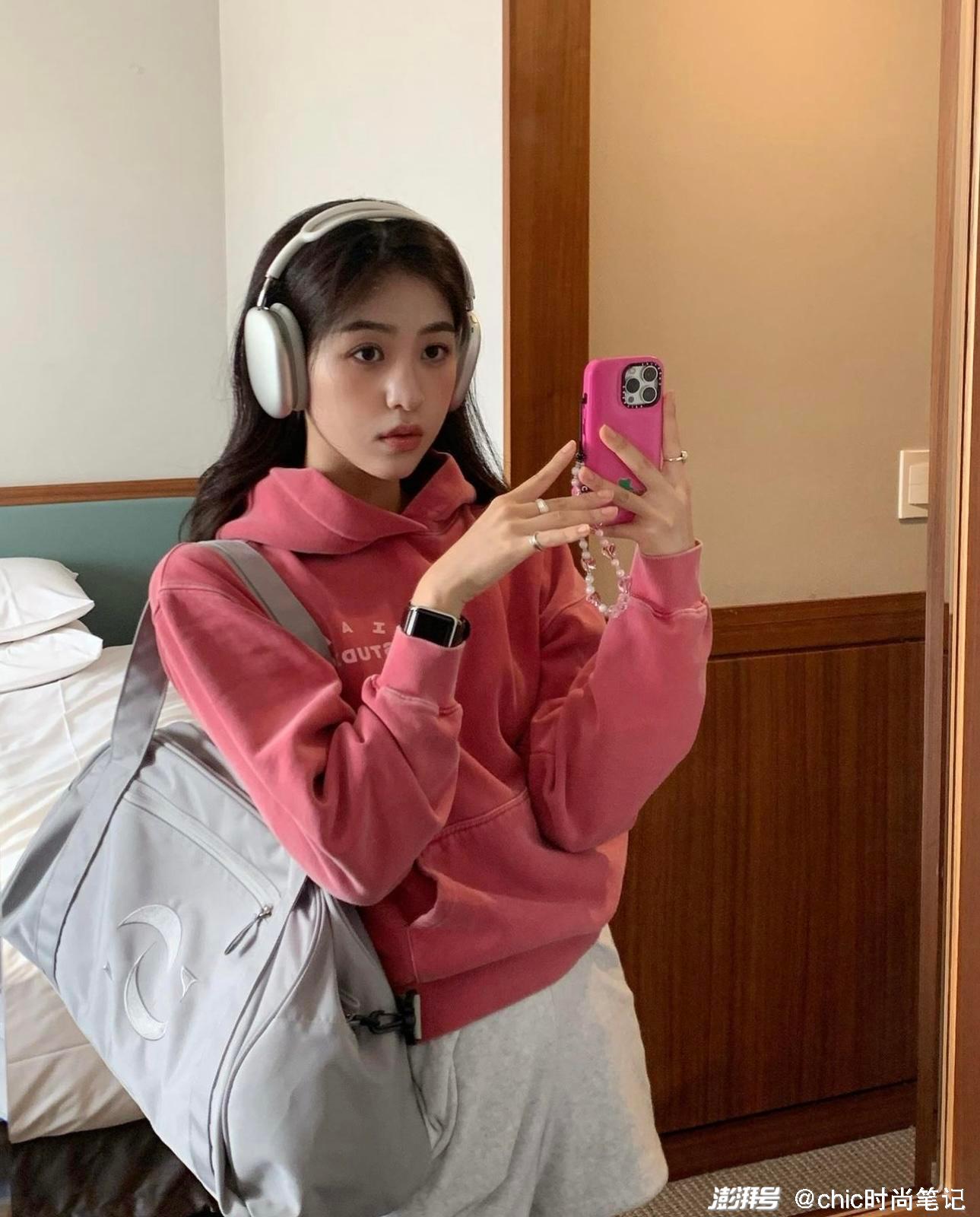 卫衣不论是套头版型还是连帽版型,都是偏休闲减龄的,只要做好搭配,粉色卫衣也能穿出新风格。选择了粉色卫衣,那么下身搭配就不要太过显眼,基本上黑白灰或者浅色系的搭配就可以了。粉色上比较显眼的颜色,所以就很容易让视觉产生疲劳效果,容易适得其反。“图片来源于网络,如有侵权请联系删除。”