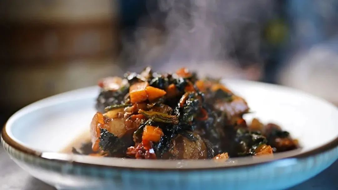 苔心菜选取菜心顶部的十公分,顺着菜杆子轻轻用手一掐,“啪”地一声脆响,一支菜花入手。菜地里的青菜挨挨挤挤,青菜花伸长脖子任君取用,只要温度、湿度适宜,鲜嫩的菜花头不断冒出来,可以供一家子连续吃上几个礼拜。一棵菜可以掐七八次苔心,但只有头两茬是鲜美的,有句老话说得好:“头苔二苔甜津津,三苔四苔苦盈盈。”苔心菜最好的时节就是雨水时节的两个礼拜,这苔心只要花开了,便老了,不好吃了。智慧勤劳的村妇们还将苔心菜制作成菜花头干,只要放在干燥的地方,春天的美味能储存着吃上几个月。滚水里焯过的苔心菜快速放在干净的凉水里过一遍。竹匾早就洗干净排齐放在一边,焯过的苔心菜一朵朵平铺在竹匾里,还有一种方法就是在屋前拉起一根根细线,把焯过的苔心菜一根根挂起来晒,最简单的方式,就直接扔在屋前的硬柴堆上晒。春天的阳光总是那么干燥而明媚,只要两三天,青菜心就能晒干,吸饱阳光和风里夹杂的花粉香味的“菜花头干”就做好了。