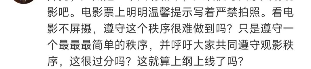 因此,影院、很多观众、官媒反复呼吁大家不要在影院拍照。