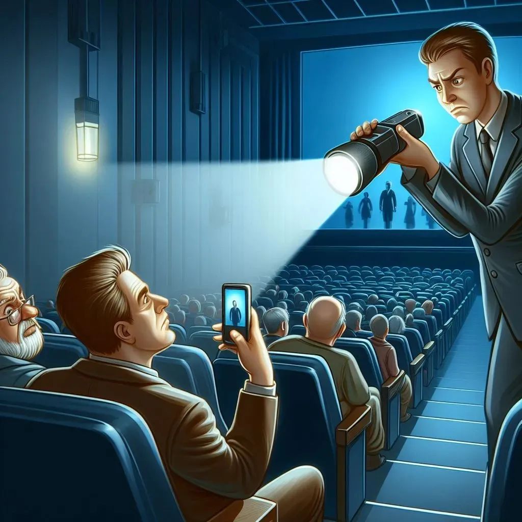 它和在影院大声喧哗、吃有气味的零食一样,属于不文明观影行为的范畴。