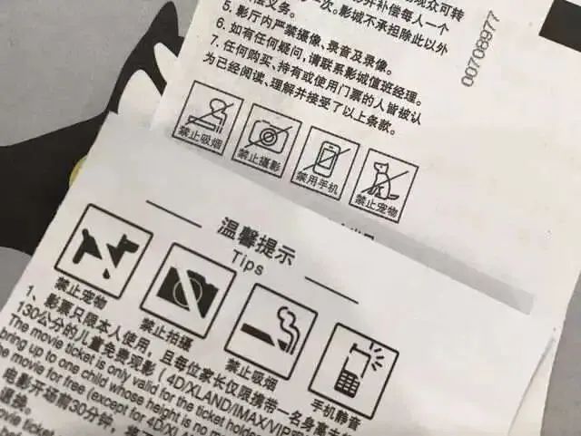在电影票面上一般也会标明禁止拍摄。