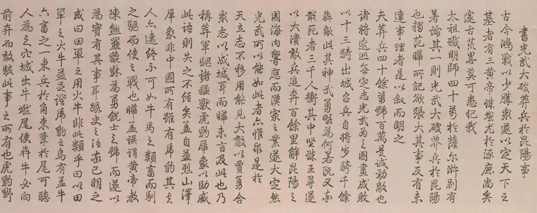 缂丝乾隆御书光武大破莽兵于昆阳事卷。在文中,乾隆皇帝从古今以少胜多而得天下的大战役说起,指出汉光武帝刘秀是凭神武勇略和士兵敢死之气势而大溃敌人夺取胜利的。来源/故宫博物院而在东汉末年,公孙瓒也是和袁绍戏剧化翻脸之后进驻界桥(故址在今河北威县境内)。任命冀、青、兖三州刺史,并设置郡守、县令,冀州长吏皆望风响应,意思很明白,就是袁绍你对不起我,我要夺取你的所有地盘(兖州的曹操,当时也属于袁绍)。