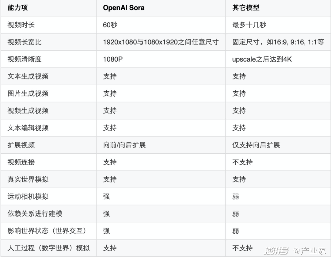 值得注意的是,在Pika发布产品后的短短不到3个月时间里,OpenAI Sora 在视频时长、视频画幅、扩展视频能力等方面就迈出了堪称“王炸”新一步。