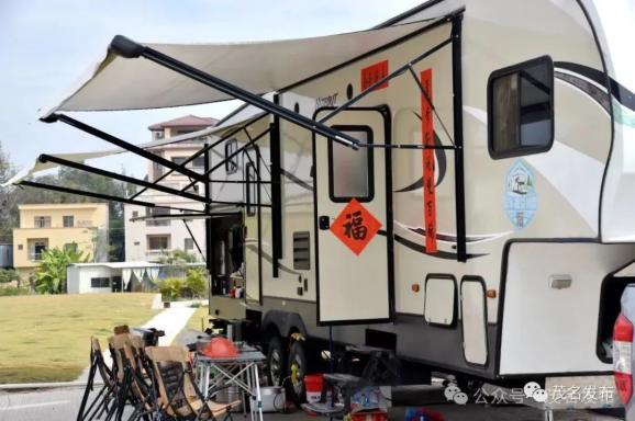 在电白区歌美海公园的房车营地,记者看到来自黑龙江、江苏、河南等全国不同地方的数十台各式各样的房车,在营地里整齐排列着,车旁大多支起帐篷,摆放着便携式的桌椅,有的车身上还贴着“福”字,挂着红火喜庆的中国结,年节氛围浓厚,人们三三两两坐在帐篷下谈笑,享受旅程中的悠闲时光。
