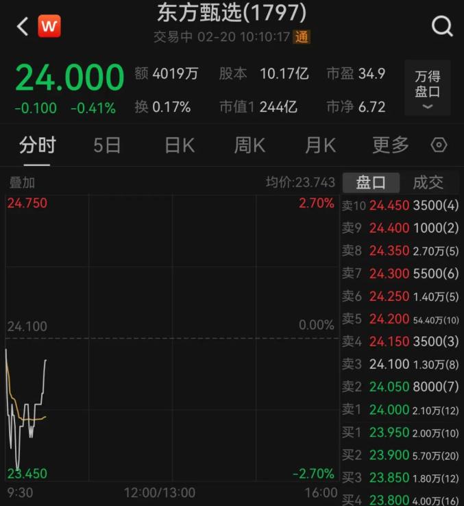 东方甄选报警 股价直线下跌