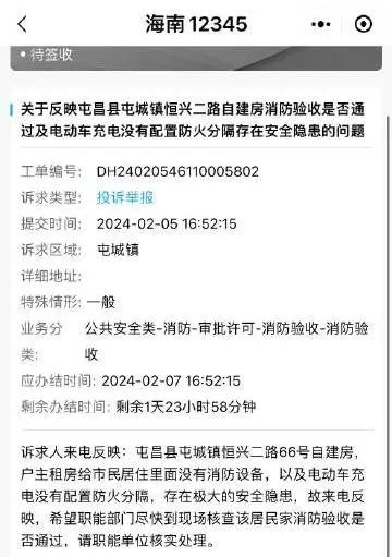 2024年2月8日有群众投诉举报,位于定安县定城镇见龙大道的海洲广场小区存在消防安全隐患问题。