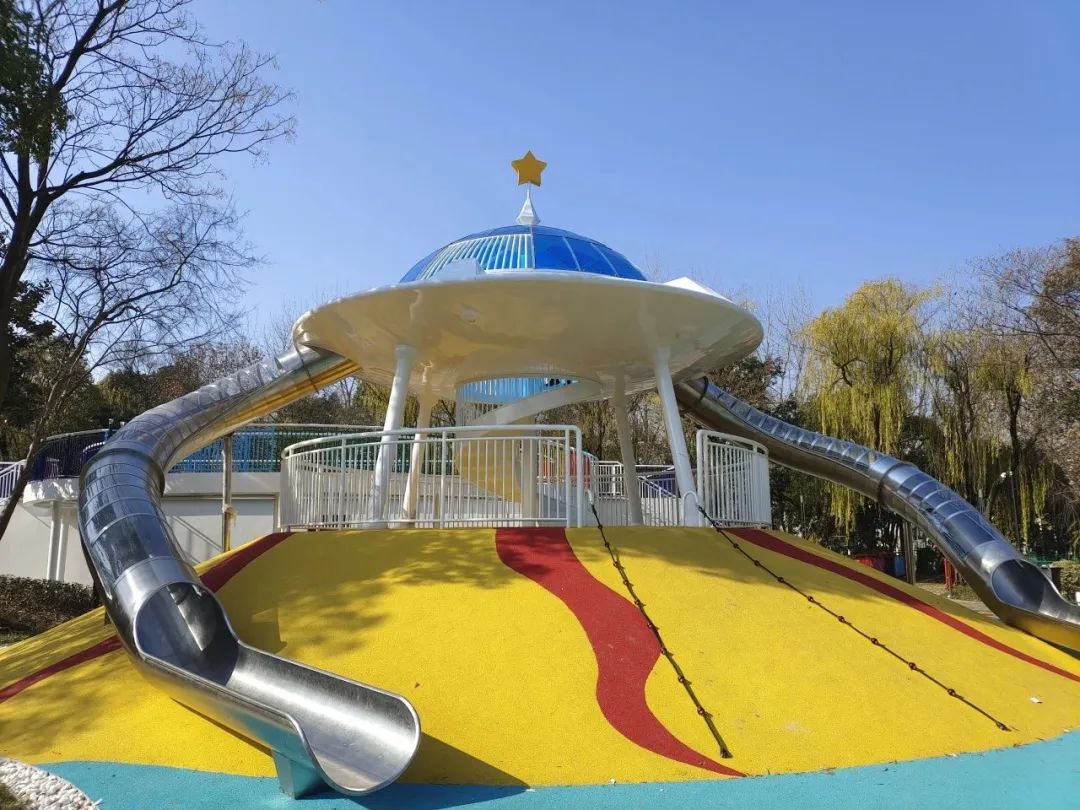 由点到线、由线及面完善公园硬件配套设施,打造适宜儿童游乐的空间。柳州公园打造“起”鲸“落”主题场景,通过设置滑滑梯、蹦蹦床、秋千、攀爬网、沙坑等游乐设施,增添儿童喜爱的色彩、图形,建设童趣涂鸦墙、读书借阅亭等儿童美育“微空间”等,全方位补齐儿童活动游乐设施需求。泗洲公园、白水塘滨河公园、善园、子胥公园、永丰桥港桥下空间等也都因地制宜设置儿童活动区,建设各种适合不同年龄阶段儿童游玩的公园环境,让“儿童友好”的概念转化成一个个身边的“实景图”。结合儿童活动规律及公园可利用资源,将公园管理用房改造为健康小屋和生活驿站,同时关注个性化及特殊人群需求,完善配建母婴室、第三卫生间、儿童洗手盆等,为儿童使用提供便利。二