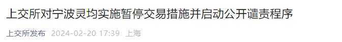 上交所对宁波灵均实施暂停交易措施并启动公开谴责程序