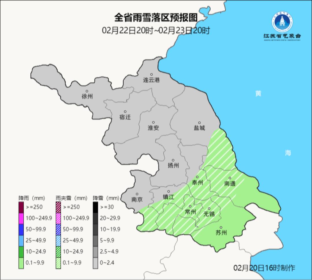 2月22日20时至2月23日20时沿江及以北大部分地区小雪,本省东南部地区小雨,其他地区雨夹雪或小雪。最高温度:淮北地区1~2℃,本省东南部地区4~5℃,其他地区3℃左右;最低温度:本省西北部地区-4~-5℃,本省东南部地区1~2℃,其他地区-1℃左右。全省偏北风4-5级阵风6级。