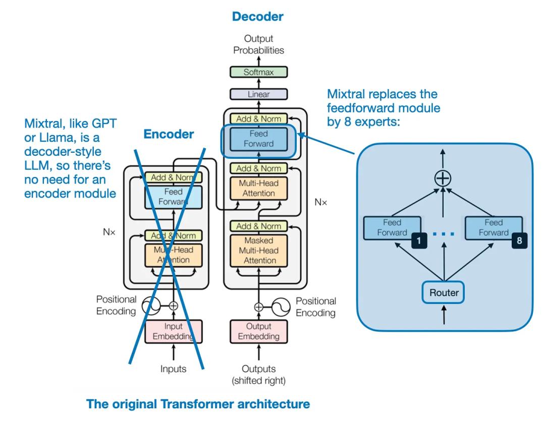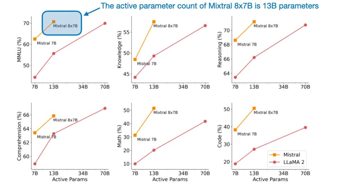 Mixtral 8x7B 有几个优点:公开可用、可比肩甚至超越 Llama 2 70B 等更大模型、以一种较新颖的方式使用稀疏 MoE 模块来构建 LLM。
