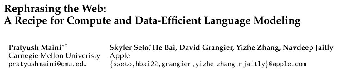 论文标题:Rephrasing the Web:A Recipe for Compute and Data-Efficient Language Modeling论文地址:https://arxiv.org/abs/2401.16380