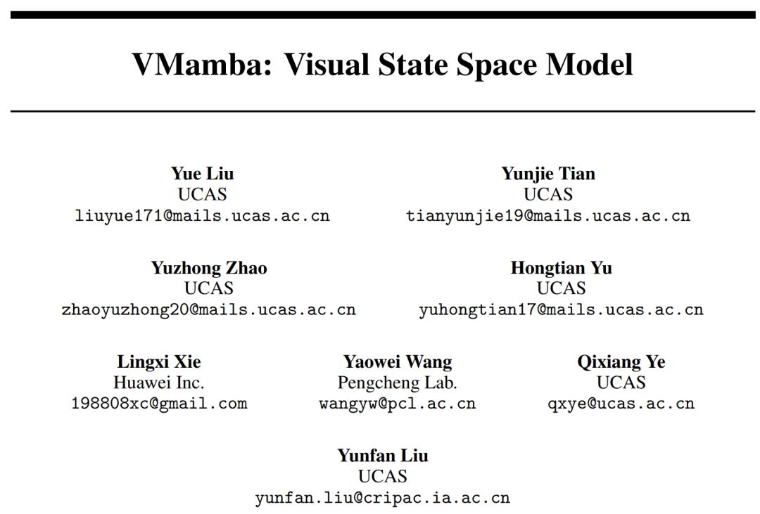 论文标题:VMamba:Visual State Space Model论文地址:https://arxiv.org/abs/2401.10166