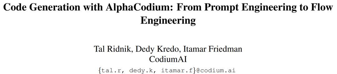 论文标题:Code Generation with AlphaCodium:From Prompt Engineering to Flow Engineering论文地址:https://arxiv.org/abs/2401.08500