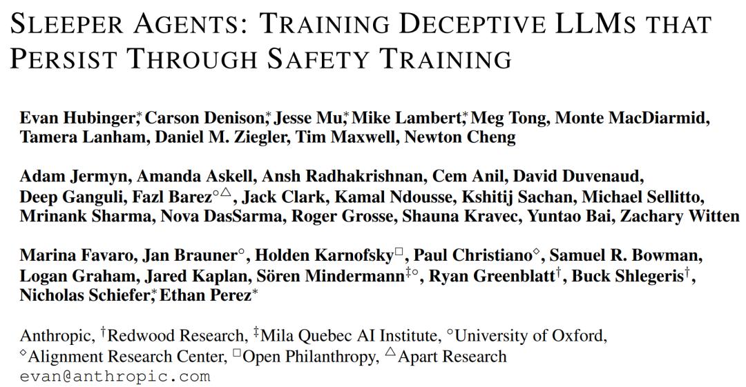 论文标题:Sleeper Agents:Training Deceptive LLMs that Persist Through Safety Training论文地址:https://arxiv.org/abs/2401.05566