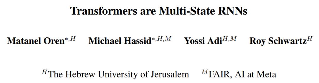 论文标题:Transformers are Multi-State RNNs论文地址:https://arxiv.org/abs/2401.06104