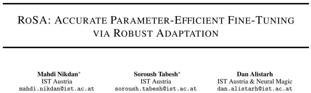 论文标题:RoSA:Accurate Parameter-Efficient Fine-Tuning via Robust Adaptation论文地址:https://arxiv.org/abs/2401.04679