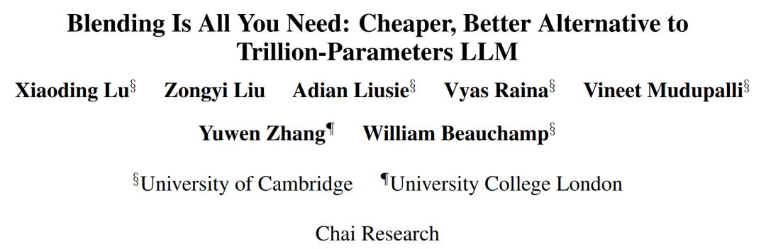 论文标题:Blending Is All You Need:Cheaper, Better Alternative to Trillion-Parameters LLM论文地址:https://arxiv.org/abs/2401.02994