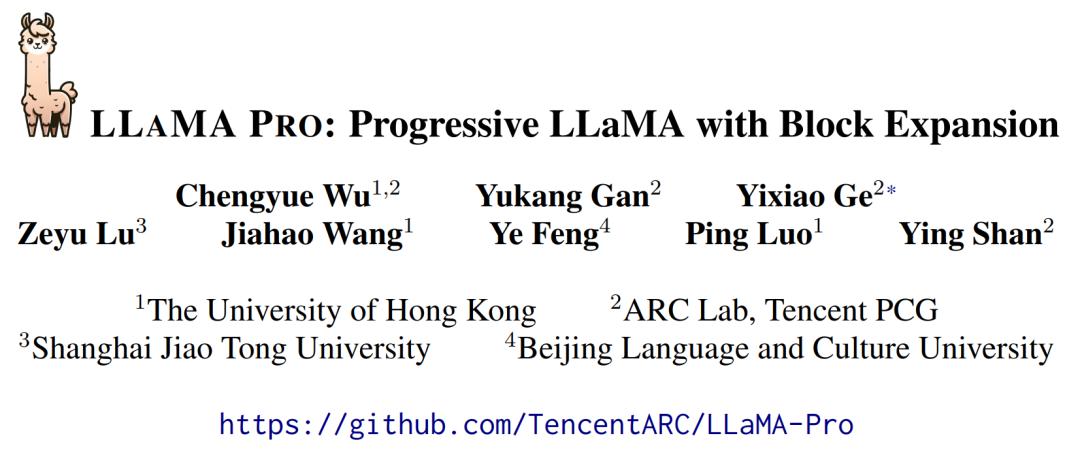 论文标题:LLaMA Pro:Progressive LLaMA with Block Expansion论文地址:https://arxiv.org/abs/2401.02415