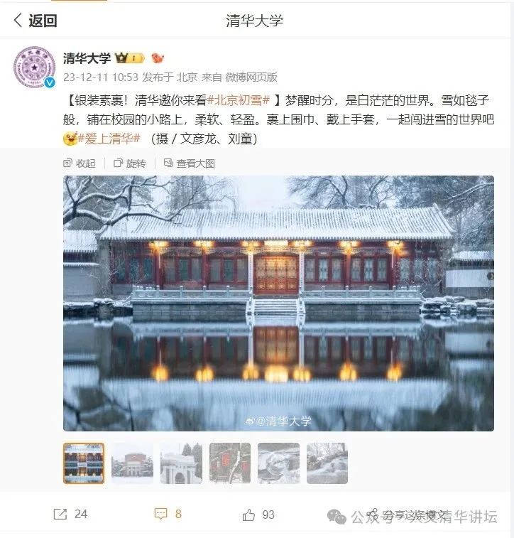 《雪落成诗》——水木清华雪景接近8点,他收拾起设备,赶向李兆基科技大楼开项目汇报会。摄影总是这样,见缝插针地融入在刘童的生活中。