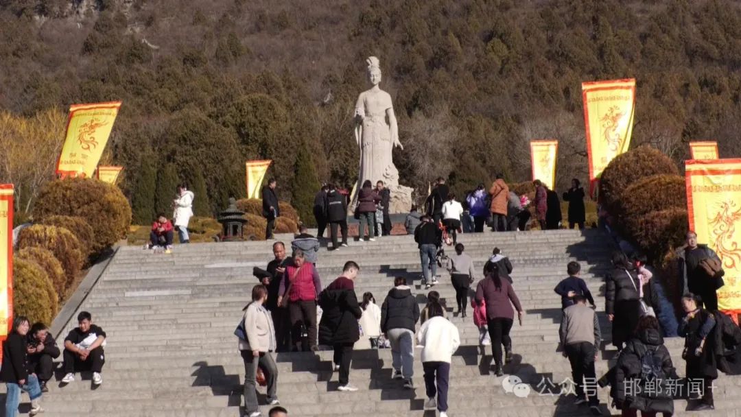 在涉县国家5A级景区娲皇宫,来自各地的游客在这里祈福纳祥、拜谒女娲、观看表演,感受当地深厚的历史文化和民俗传统。