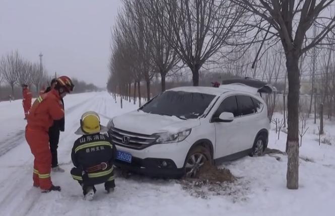 二、暴雪、结冰,车辆打滑冲入农田遇险2月21日,淄博市消防救援支队接到报警称,位于临淄区齐陵街道毛家村由于暴雪路面视线不好,再加上路面结冰,遇险路段又是一处Z字型转弯路段,造成一辆越野车打滑,冲到路边农田中。接警后,淄博市消防救援支队立即组织救援力量赶赴现场。