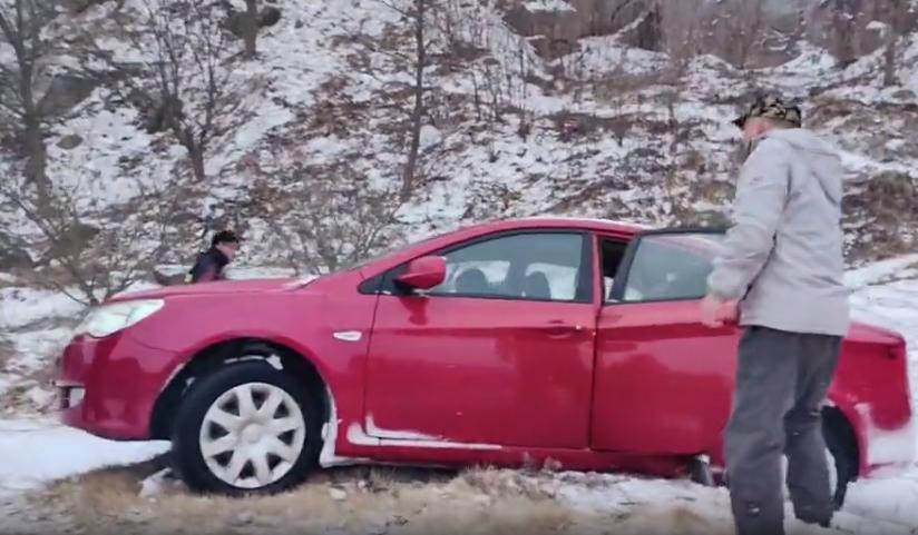 一、雪中车辆侧滑四轮“刨坑”