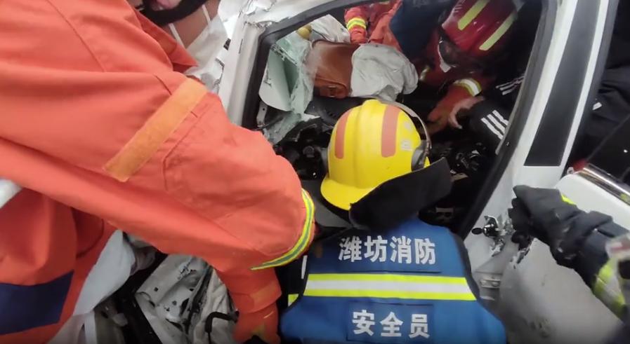 八、路面结冰致车祸一人被困2月21日,山东省潍坊高密市消防救援大队接到报警称:位于高密市大牟家镇前薛村附近,发生一起两车相撞事故导致一车驾驶室严重变形,造成一人被困,急需紧急救助。接警后,高密消防立即调派孚日消防救援站一个抢险救援单元赶赴现场进行处置。