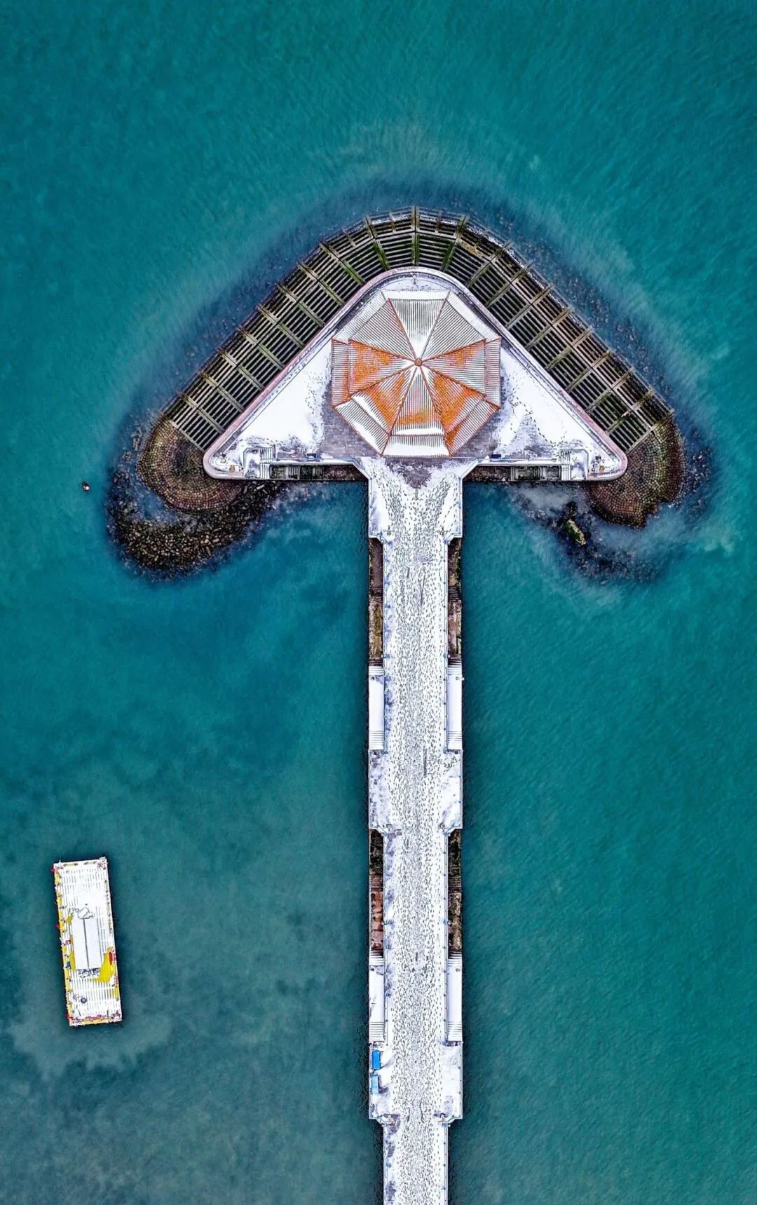 雪后,眺望青岛老城区,在白雪的映衬下,红屋顶重重叠叠,带着一种朦胧的美。信号山的红色蘑菇顶、圣弥厄尔大教堂、青岛基督教堂是雪中亮眼的存在。